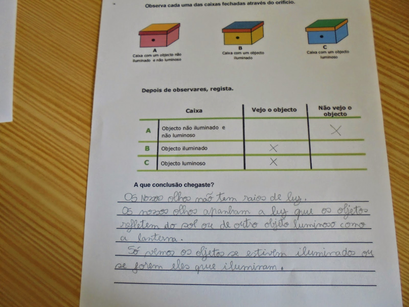 Iniciámos o ano letivo a explorar o comportamento da luz e a descobrir porque não vemos os objetos no escuro. Muitas observações foram realizadas e as conclusões registadas.