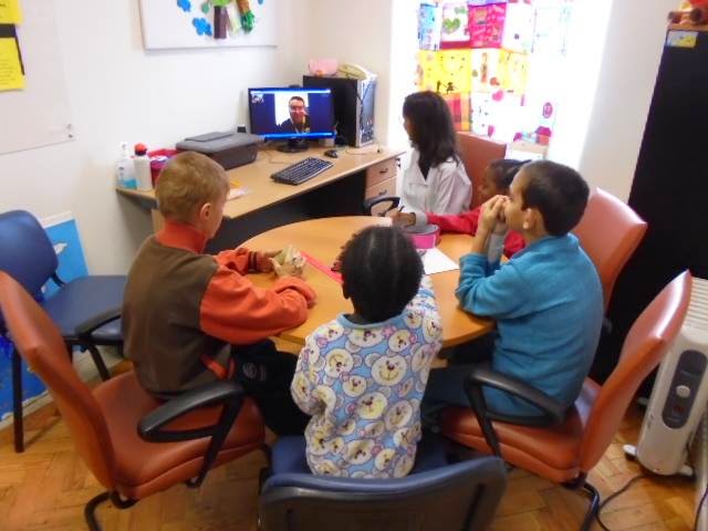 O tema da nossa TeleAula com o Pavilhão do Conhecimento foi a Astronomia. O “astrónomo” Miguel e a sua “assistente” Sandra falaram-nos da formação do Universo, da dimensão do sistema solar, dos planetas rochosos e gasosos e muitas outras coisas astronómicas! Também percebemos por que é que não conseguimos passar férias num dos outros planetas. Construir a régua do nosso sistema solar foi um desafio, mas conseguimos!!!