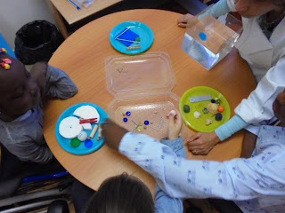 Conversámos sobre a influência das massas, das formas e da densidade dos materiais sólidos e líquidos.