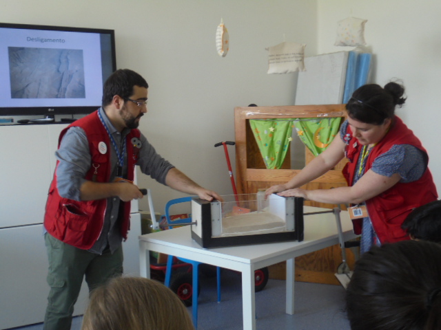 Com a Sandra e o Ricardo do Pavilhão do Conhecimento fizemos de conta que éramos sismólogos. Falámos dos sismos no mundo, das escalas, dos vários tipos de falhas e ondas e simulámos como é que elas se formam.