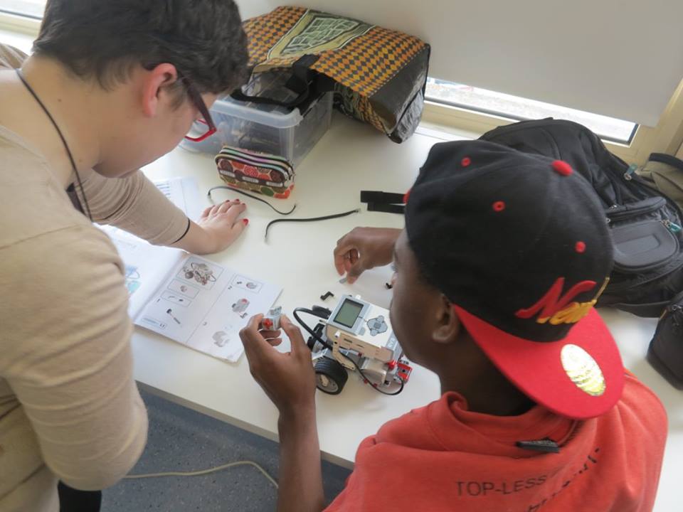 O professor Paulo Torcato trouxe a Nicole e o Alex para mais uma sessão de robótica. Tivemos a sala cheia… com alunos dos 6 aos 18, de várias nacionalidades (portugueses, angolanos, guineenses, são tomenses, cabo-verdianos e ainda ingleses ) com orientação em português e inglês. Desta vez, a nossa tarefa foi desmontar e montar o robot.