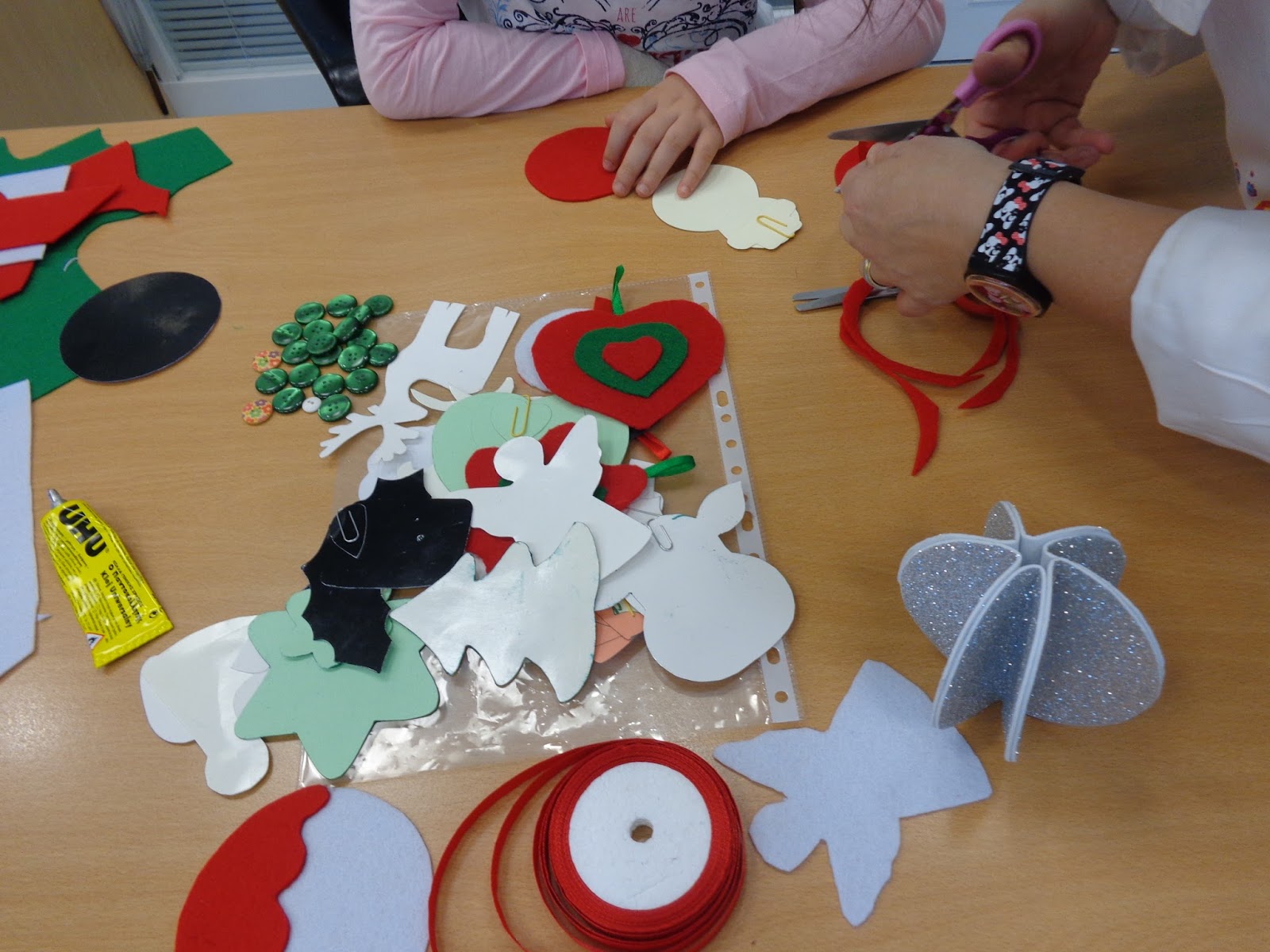 Iniciando a viagem pelo mundo natalício, os nossos alunos e os alunos da EB 2,3 Luís de Camões construíram decorações para uma árvore de Natal.